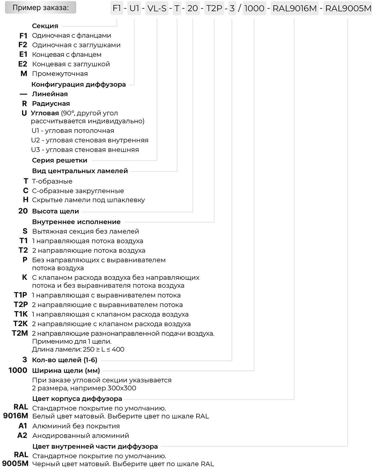 Линейный диффузор скрытого монтажа VL-S под шпаклевку