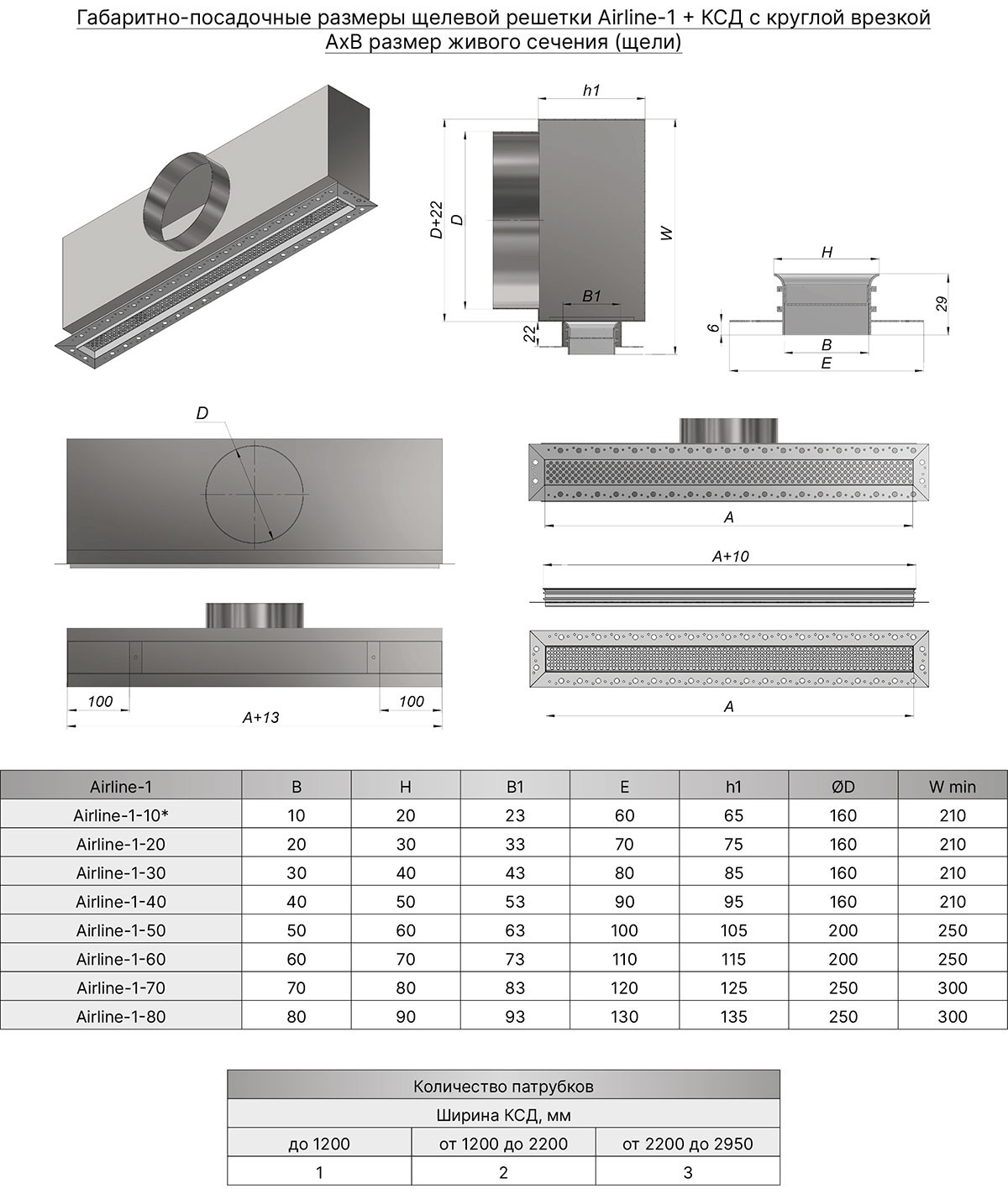 Щелевая скрытая решетка Airline-1 представляет собой декоративную рамку с перфорированной стальной кассетой внутри. После монтажа решетки, видимой частью в помещении остаётся только щелевой слот чёрного цвета. Для удобства монтажа рамка оснащена «полкой» 6 мм под соответствующую толщину гипсокартона или комбинации листов разной толщины. Отверстия в рамке улучшают адгезию финишного материала.